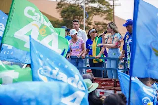 Destino final da carreata de Gracinha, em São João D´Aliança o apoio a Caiado veio de moradores e também da prefeita Débora (PL), que destacou a construção de 50 casas a custo zero no município. “É um governo humanizado, que enxerga a realidade das pessoas e quer fazer a diferença na vida de cada uma delas”, avaliou Débora.