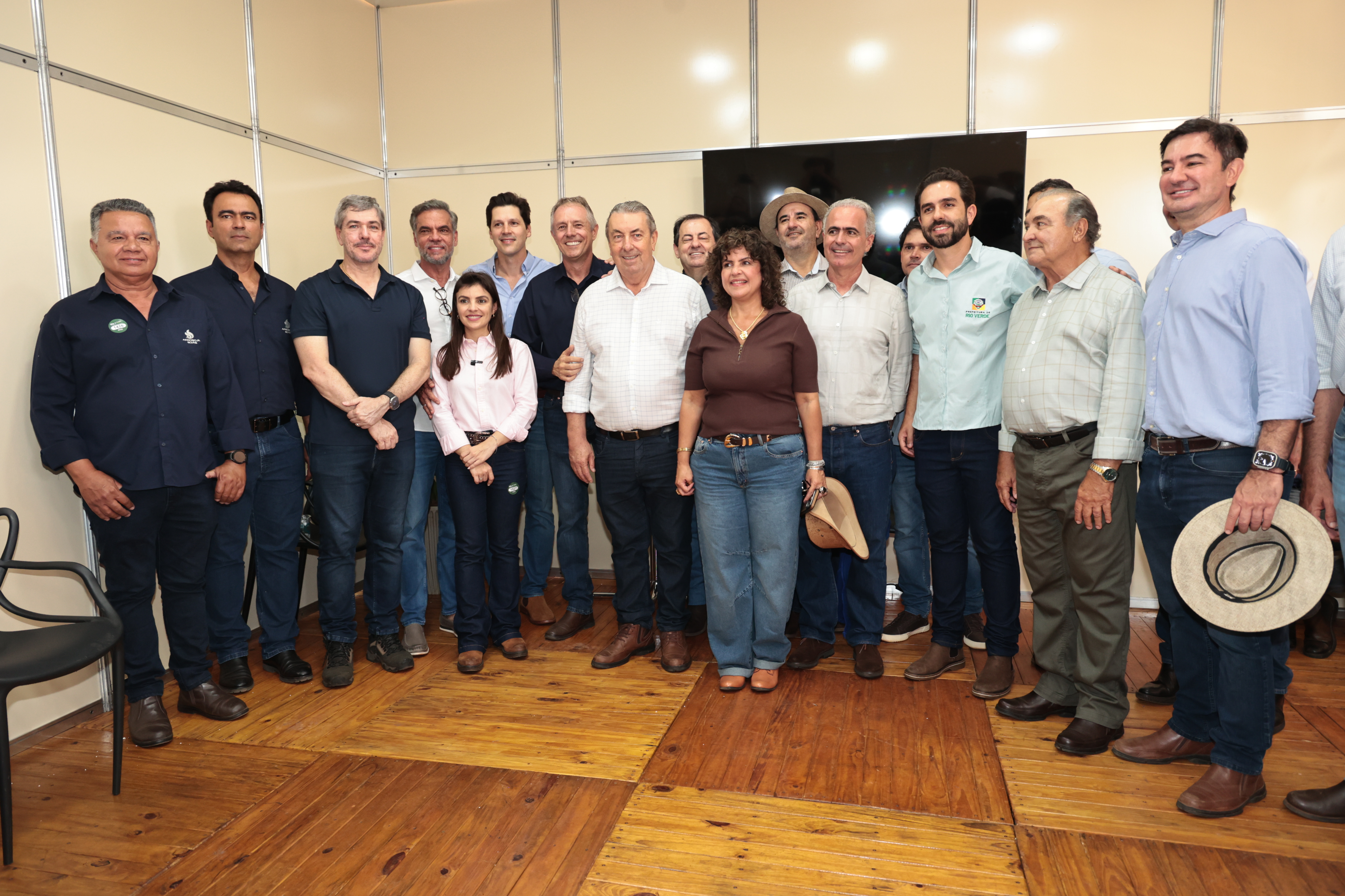 Após a coletiva, autoridades participaram do hasteamento das bandeiras no estande do Governo de Goiás. Também foi assinado o termo simbólico que transfere a capital do estado para Rio Verde durante a realização do evento.